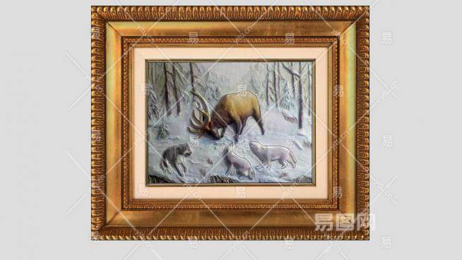 被狼群围攻的麋鹿浮雕挂画SU模型下载_sketchup草图大师SKP模型
