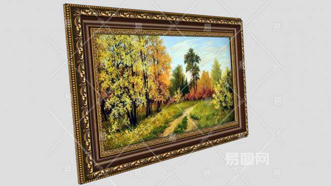 秋天林间风景彩绘挂画SU模型下载_sketchup草图大师SKP模型