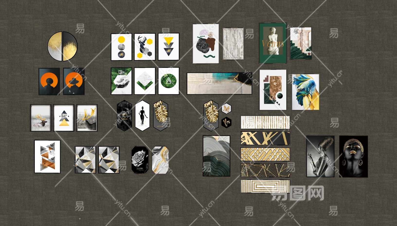 现代抽象挂画,艺术雕塑装饰画,圆形多边形组合画su草图模型下载