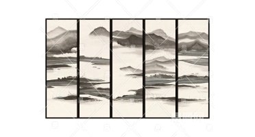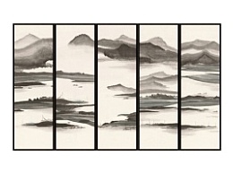 (5)新中式抽象山水屏风背景装饰挂画
