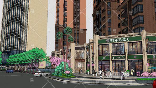 宝利丰广场新古典现代景观SU模型下载_sketchup草图大师SKP模型