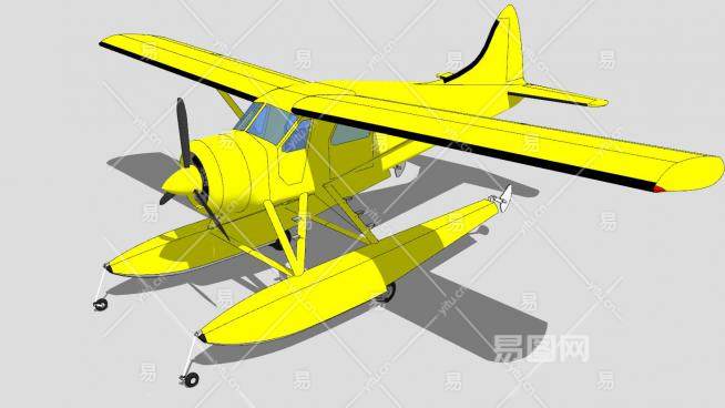 黄色DHC-2海狸水上飞机SU模型下载_sketchup草图大师SKP模型