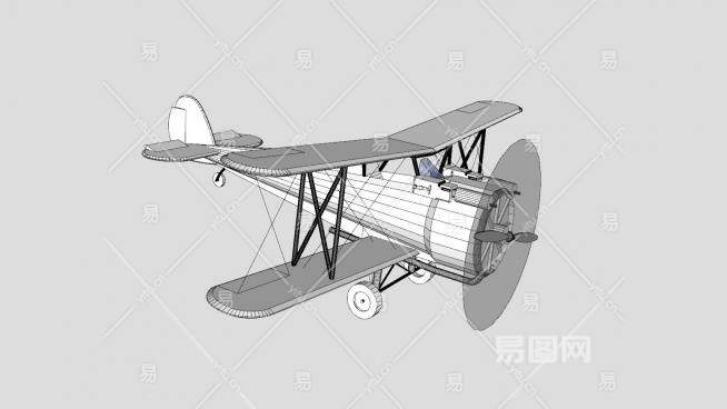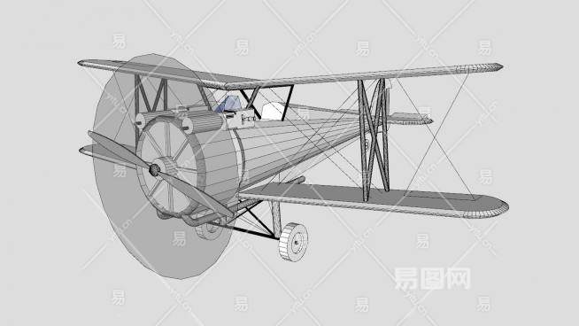 一战双翼螺旋飞机SU模型下载_sketchup草图大师SKP模型