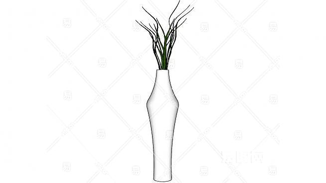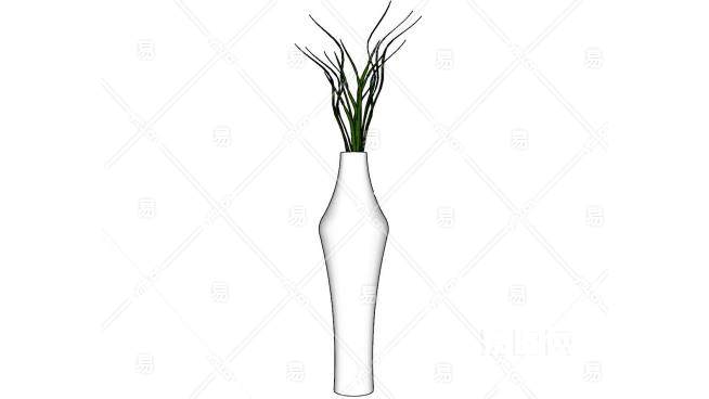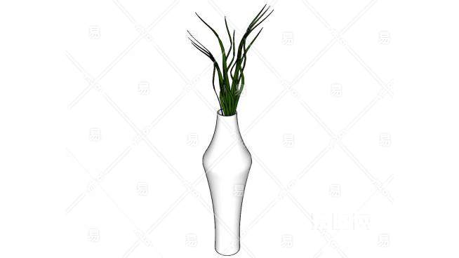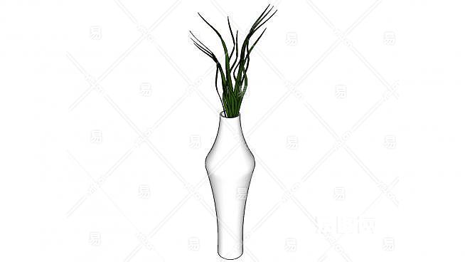 落地白瓷瓶植物装饰SU模型下载_sketchup草图大师SKP模型