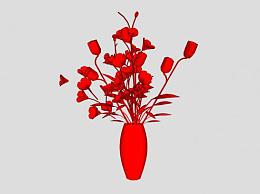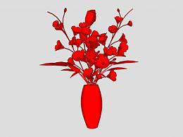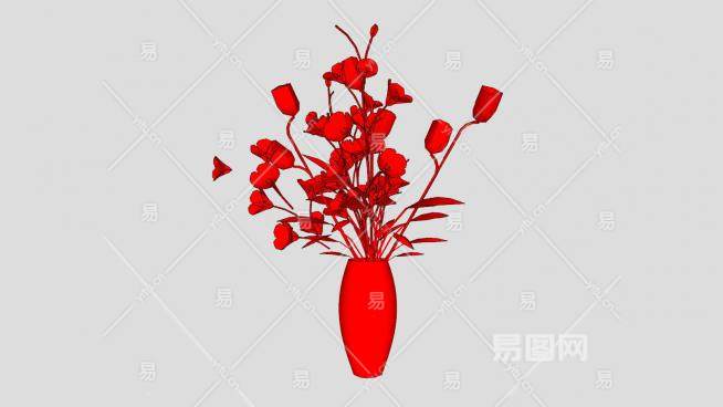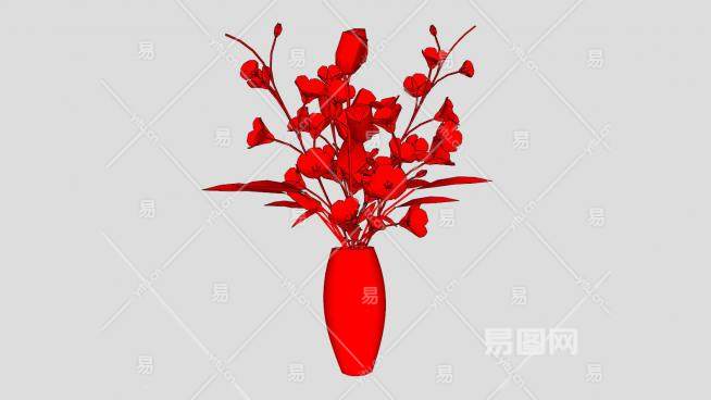 红花和花瓶SU模型下载_sketchup草图大师SKP模型