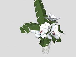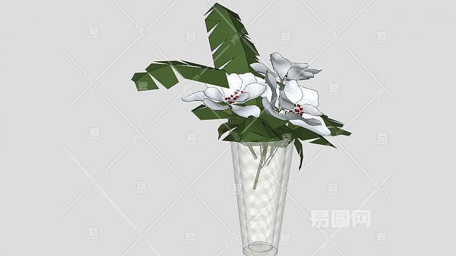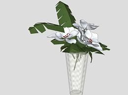 玻璃花瓶白花卉SU模型下载_sketchup草图大师SKP模型