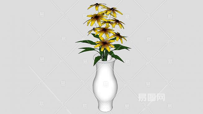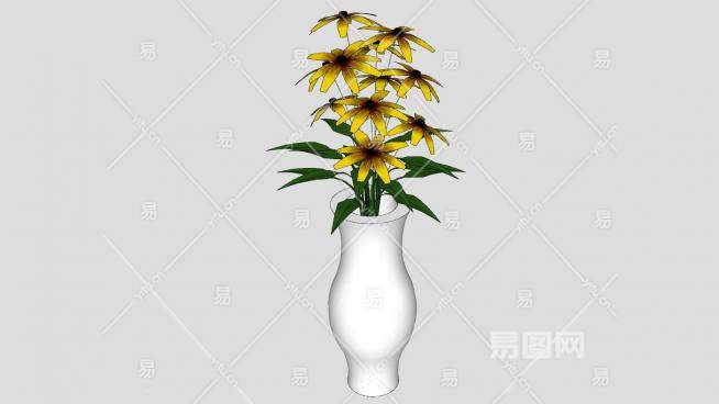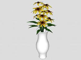 黄色花卉白瓷花瓶SU模型下载_sketchup草图大师SKP模型