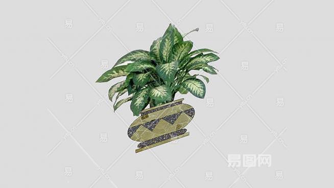 瓷器花瓶观叶植物SU模型下载_sketchup草图大师SKP模型