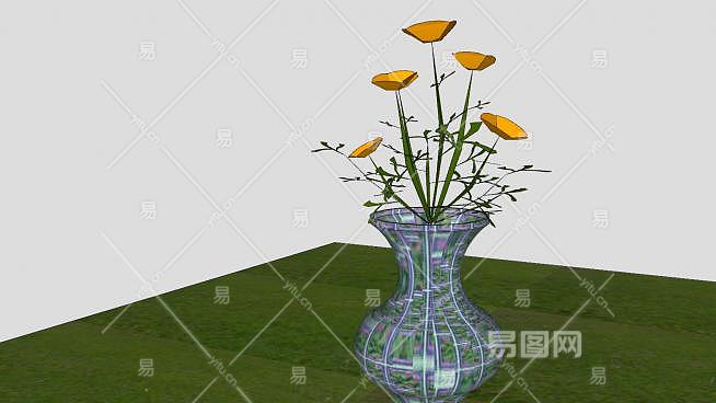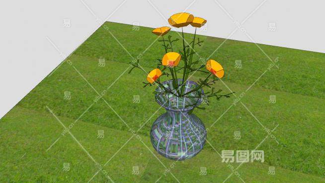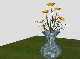 室内摆件橙色花卉花瓶SU模型下载_sketchup草图大师SKP模型