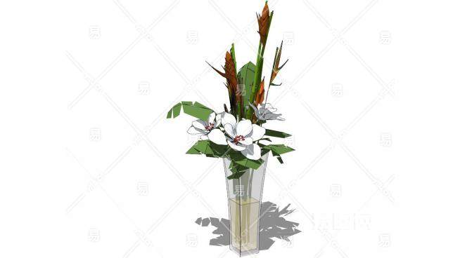 玻璃植物花瓶su模型下载_sketchup草图大师SKP模型