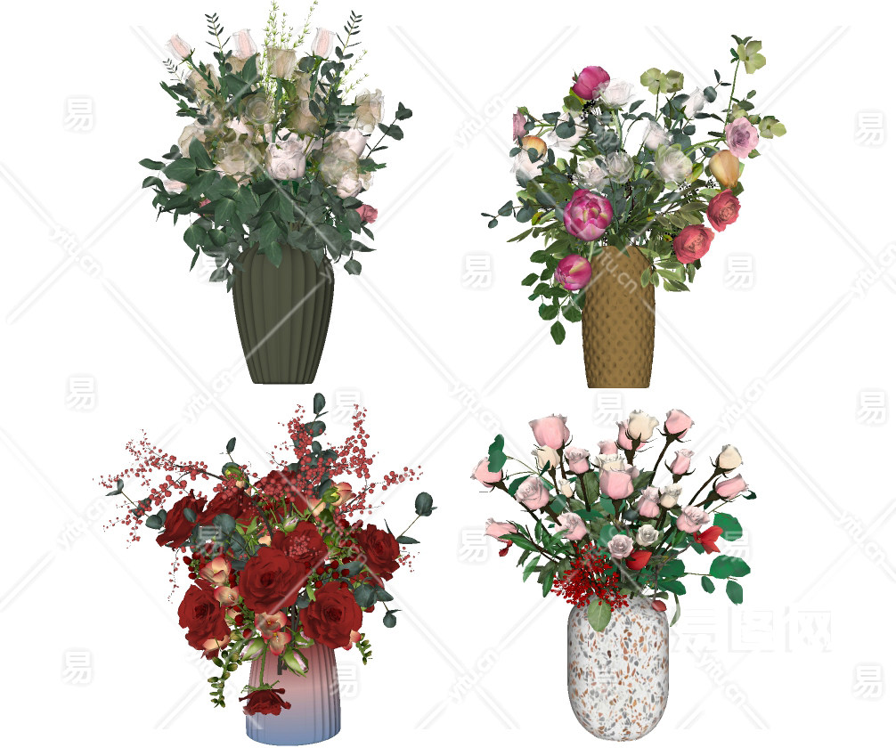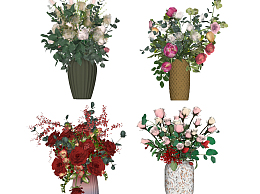 11现代欧式花瓶花艺,插花,玫瑰花su草图模型下载