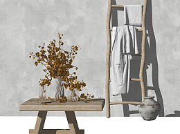 44现代民宿木板凳,浴巾梯子陶罐花瓶花卉su草图模型下载