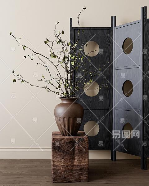 16现代花瓶花艺,花瓶摆件,陶罐摆件SU模型