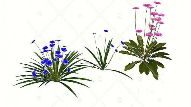 粉色蓝色开花植物SU模型下载_sketchup草图大师SKP模型