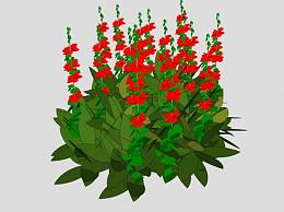 红色鼠尾草植物SU模型下载_sketchup草图大师SKP模型