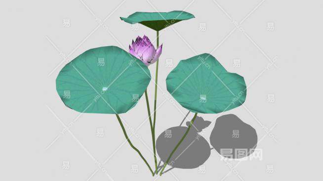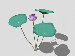 单瓣粉莲荷花荷叶SU模型下载_sketchup草图大师SKP模型