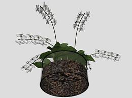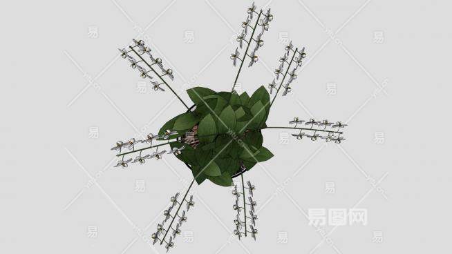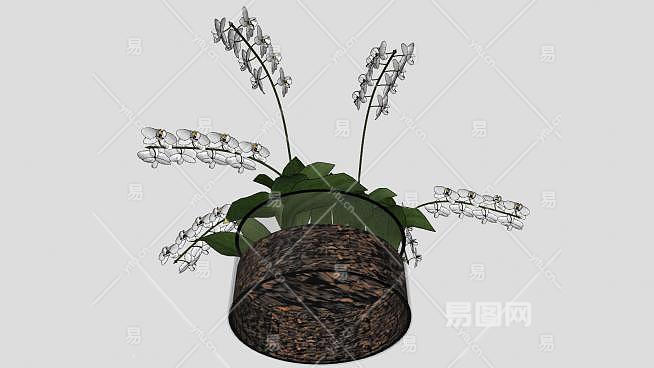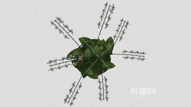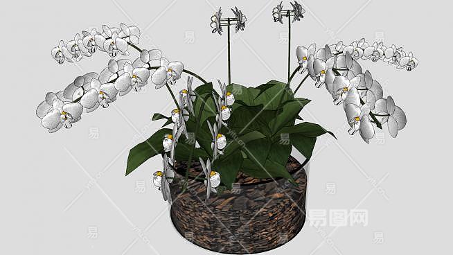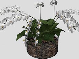白色的兰花观赏盆栽SU模型下载_sketchup草图大师SKP模型