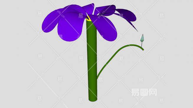 八瓣紫色花朵SU模型下载_sketchup草图大师SKP模型