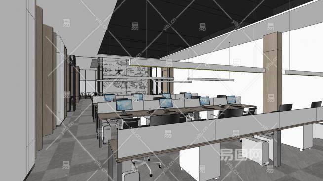 现代简约办公空间SU模型下载_sketchup草图大师SKP模型