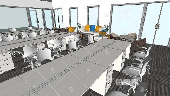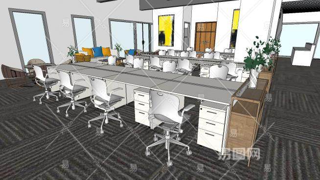 现代工业风办公空间SU模型下载_sketchup草图大师SKP模型