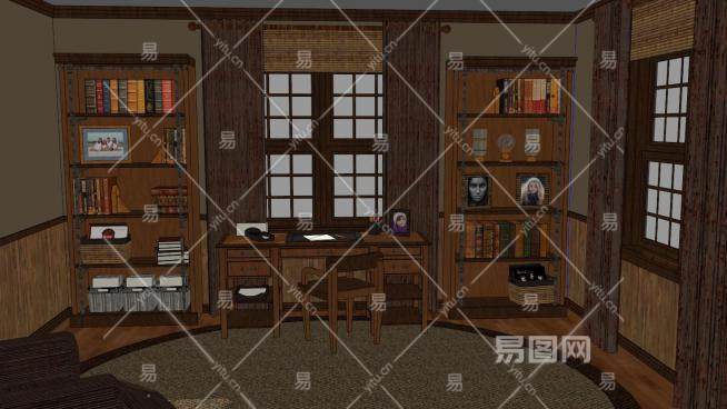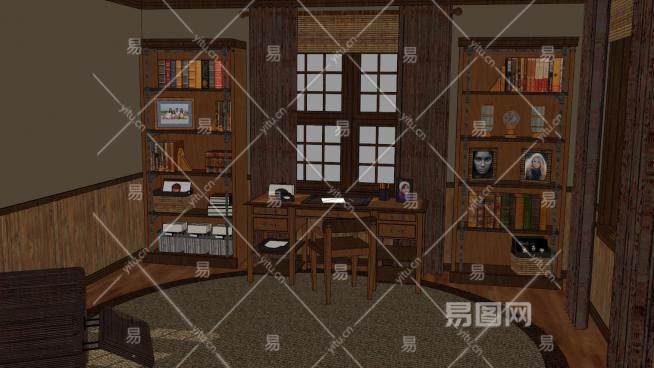 现代木质家庭办公室SU模型下载_sketchup草图大师SKP模型