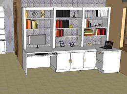 现代白色橱柜办公室SU模型下载_sketchup草图大师SKP模型