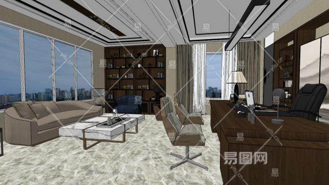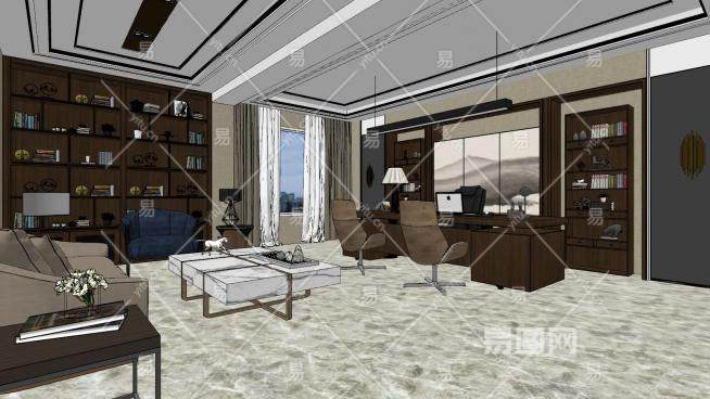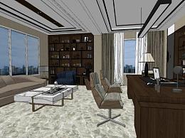现代新中式总经理办公室SU模型下载_sketchup草图大师SKP模型