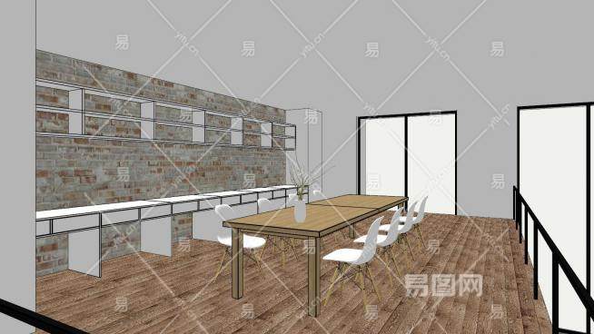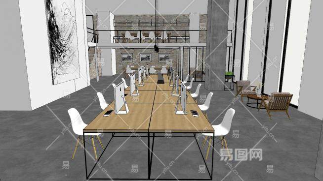 工业风办公区室内SU模型下载_sketchup草图大师SKP模型