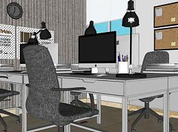 小型的办公室室内空间SU模型下载_sketchup草图大师SKP模型