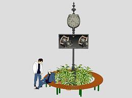 户外景观植物座椅和立钟SU模型下载_sketchup草图大师SKP模型