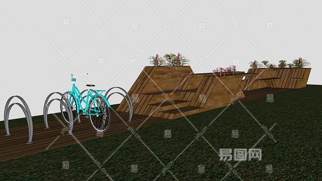 户外景观座椅单车停车架SU模型下载_sketchup草图大师SKP模型