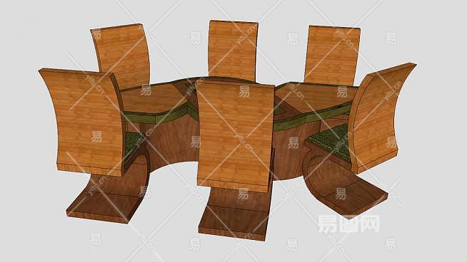 现代餐桌和 椅子SU模型下载_sketchup草图大师SKP模型
