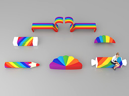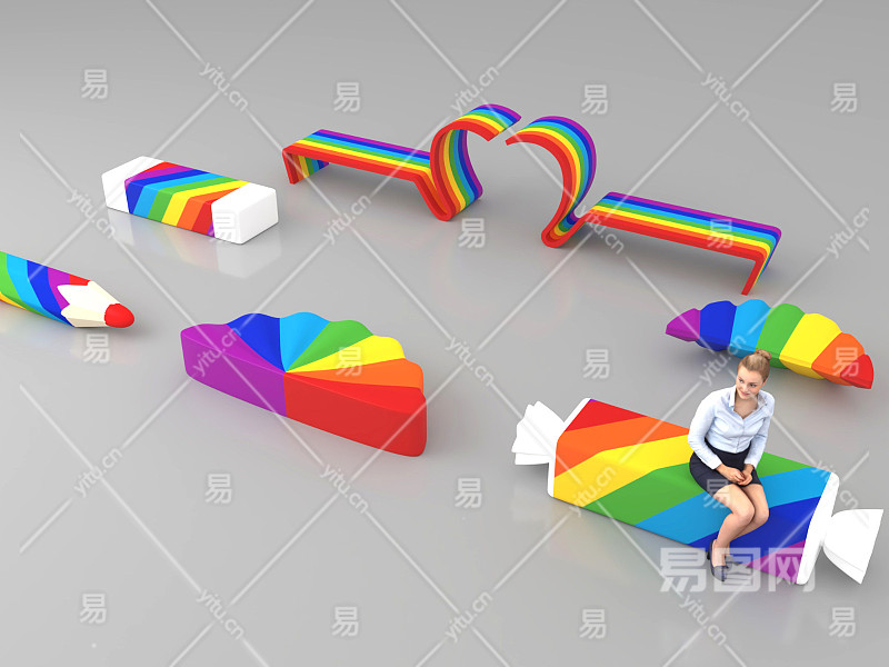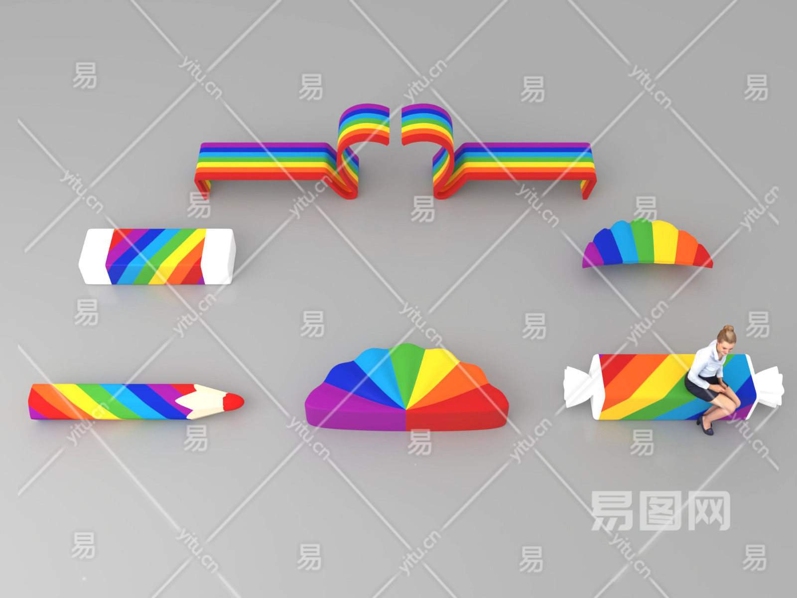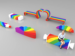 彩虹椅子 商业街座椅 铅笔户外椅 商业街美陈 彩色入口大门