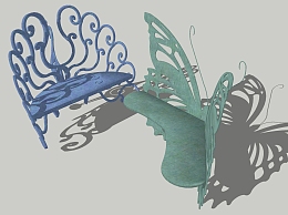 金属户外休闲椅草图大师模型,户外椅SU模型下载