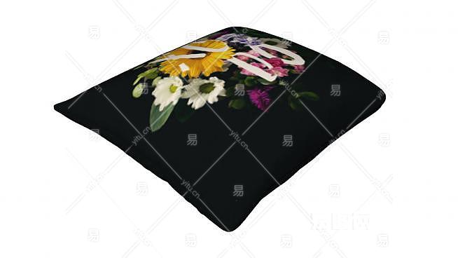 黑色文艺花卉抱枕SU模型下载_sketchup草图大师SKP模型