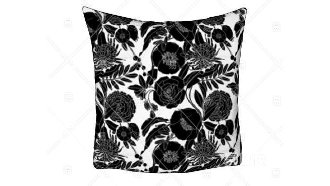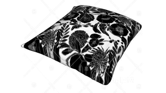 黑色花卉白色抱枕SU模型下载_sketchup草图大师SKP模型
