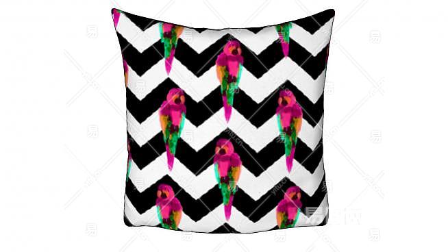 之字形黑白条纹鹦鹉抱枕SU模型下载_sketchup草图大师SKP模型