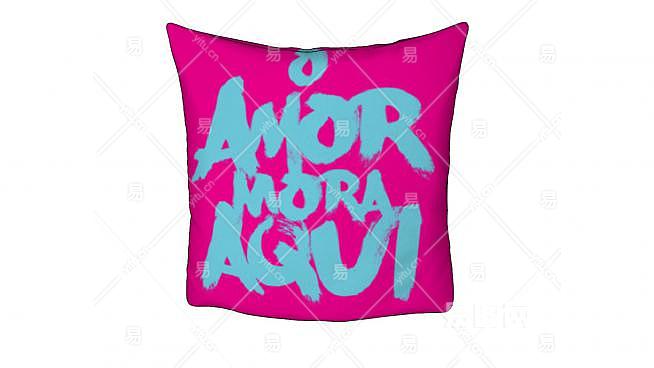 雾蓝色英文粉色抱枕SU模型下载_sketchup草图大师SKP模型