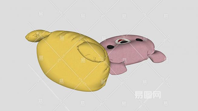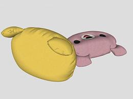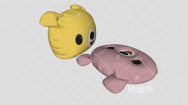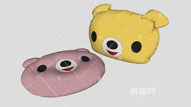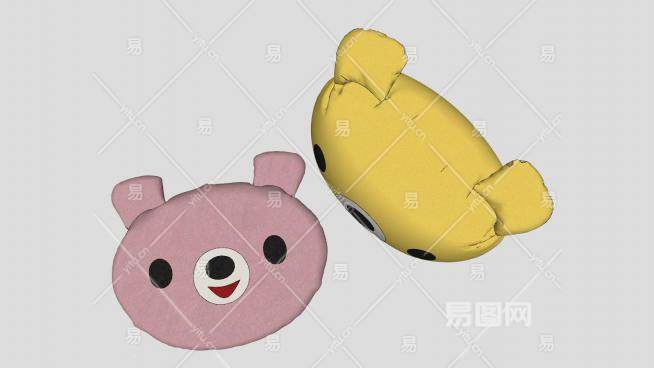 粉色紫色小熊抱枕SU模型下载_sketchup草图大师SKP模型