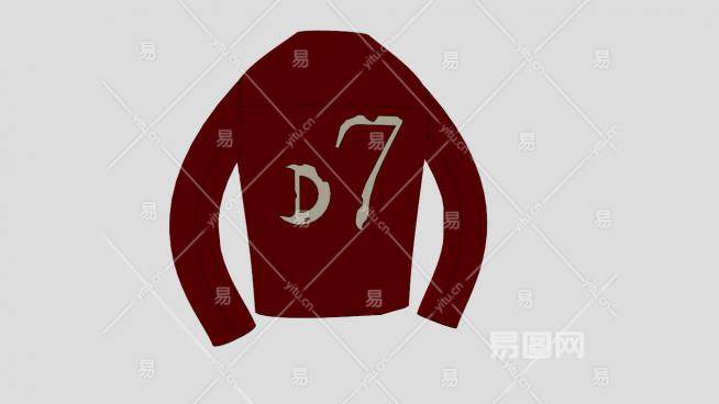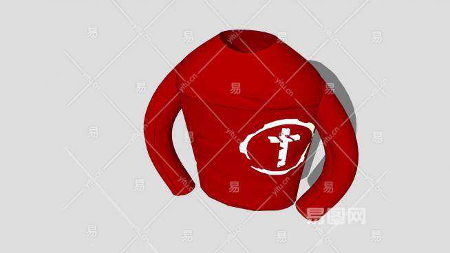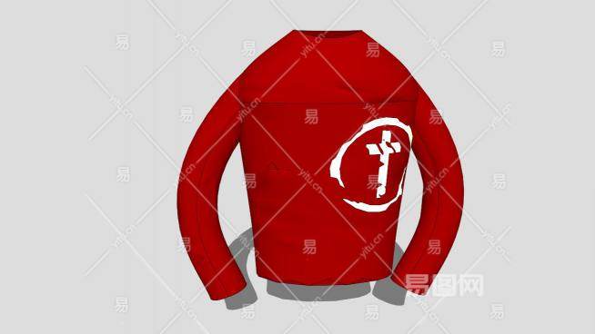 红色长袖圆领汗衫SU模型下载_sketchup草图大师SKP模型