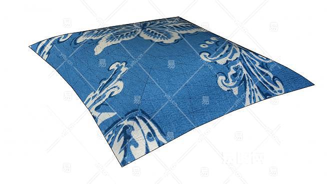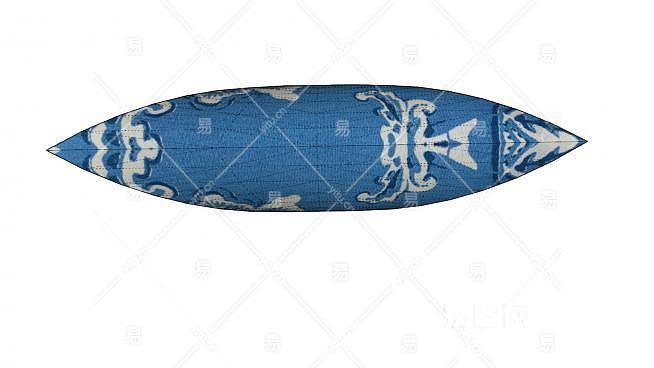蓝色复古印花枕头SU模型下载_sketchup草图大师SKP模型