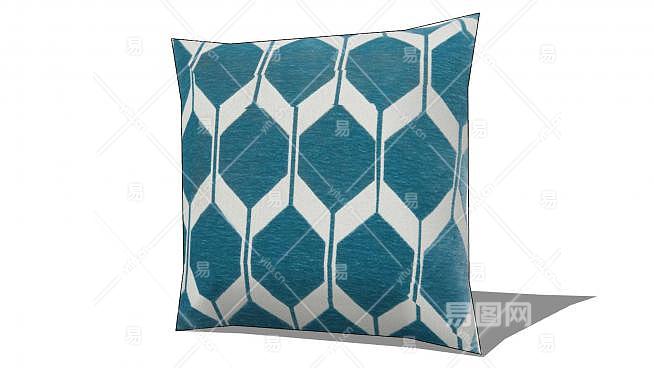 简约蓝色印花抱枕SU模型下载_sketchup草图大师SKP模型