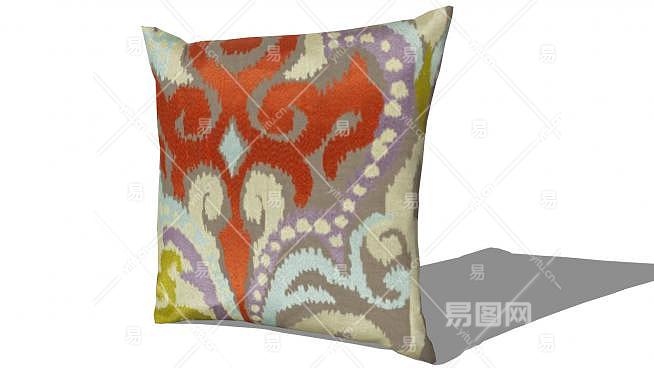 复古印花纯棉抱枕SU模型下载_sketchup草图大师SKP模型
