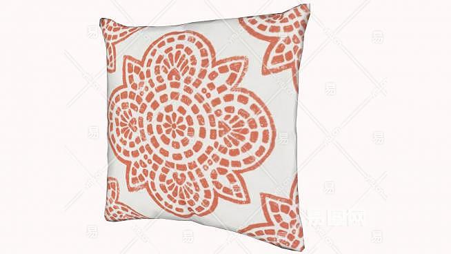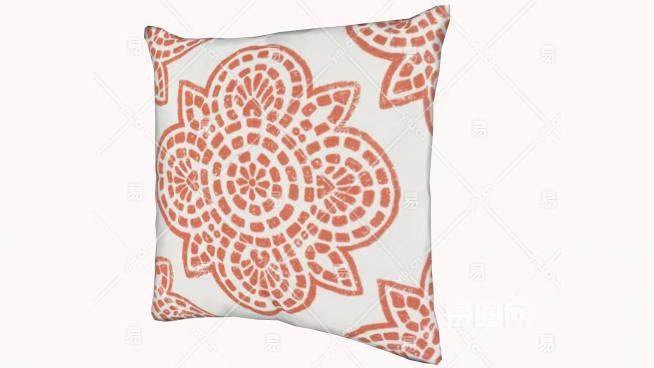 橙红色印花白底抱枕SU模型下载_sketchup草图大师SKP模型