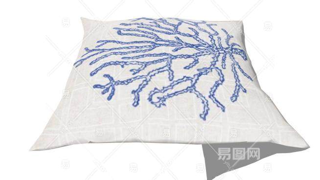 珊瑚图案白色抱枕SU模型下载_sketchup草图大师SKP模型