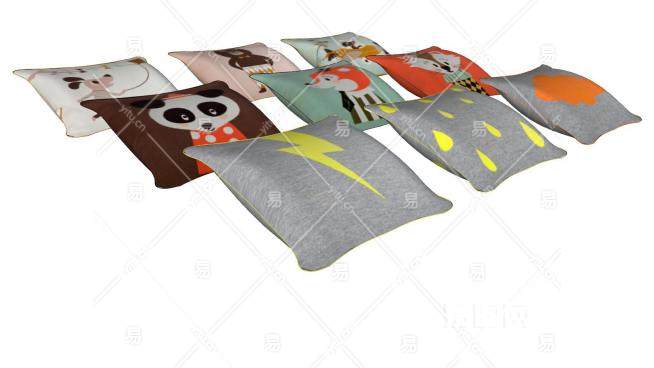 卡通图案儿童抱枕系列SU模型下载_sketchup草图大师SKP模型