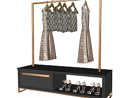现代落地置物衣架草图大师模型,服装店衣架su模型下载