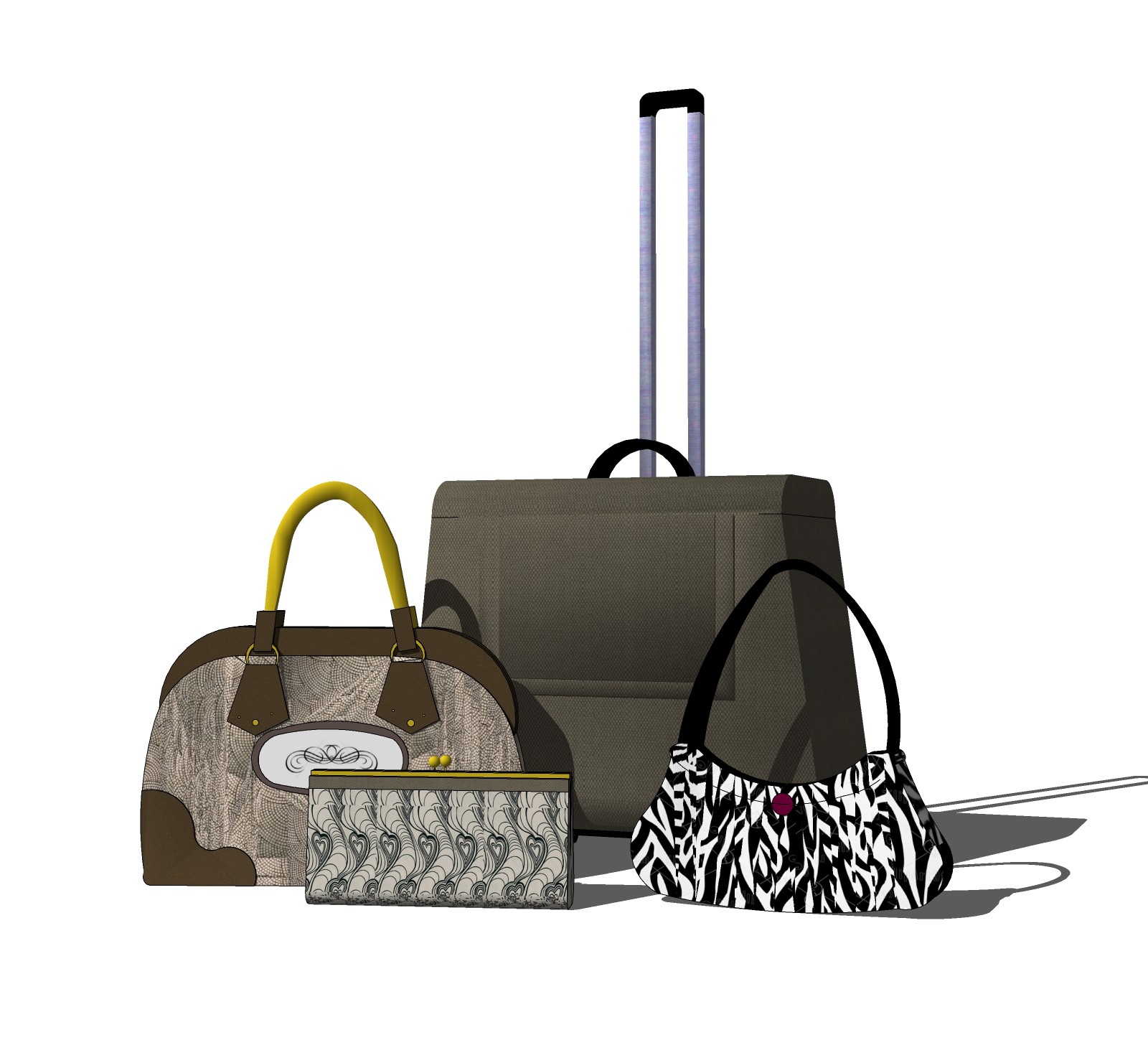 现代行李箱挎包草图大师模型,服装店衣架su模型下载