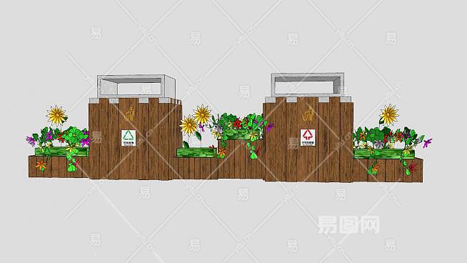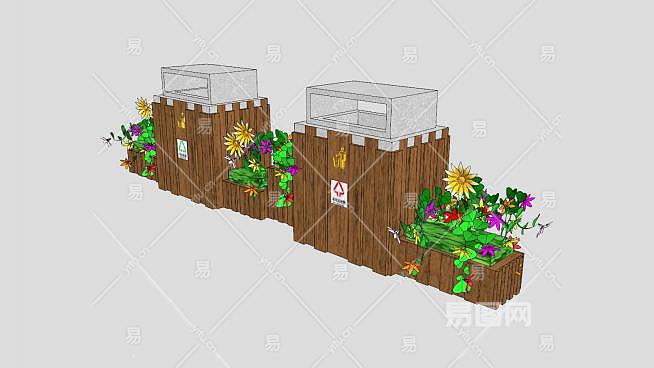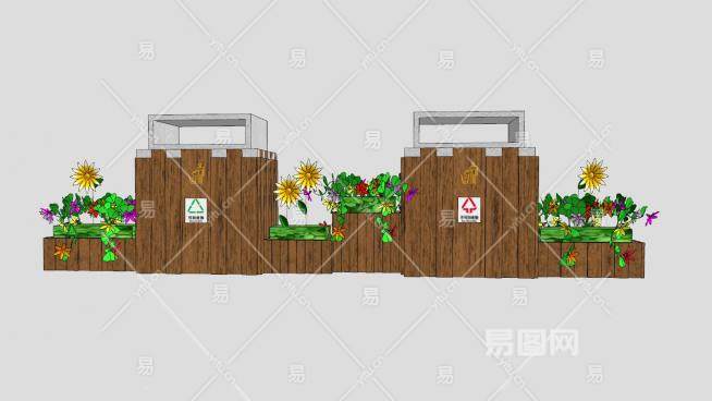 木质景观垃圾桶垃圾箱SU模型下载_sketchup草图大师SKP模型