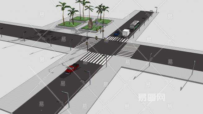 十字交叉红绿灯路口SU模型下载_sketchup草图大师SKP模型